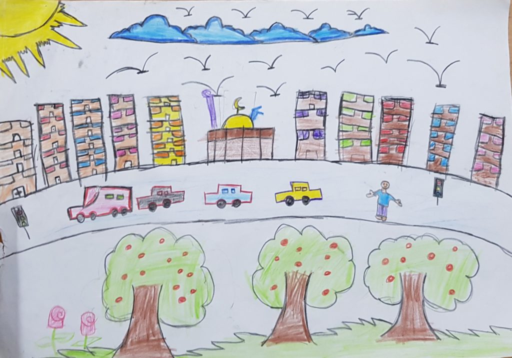 These artistic works were developed within the framework of the Child Protection Area of Responsibility (CP AoR) initiative “Gaza We Want.” The initiative supports children and young people in expressing their hopes, experiences, and visions for a peaceful future through creative and artistic mediums.