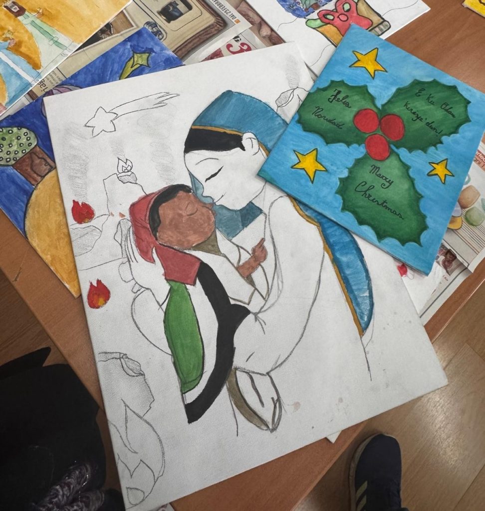 The drawing was created during an intercultural art workshop at the school, where we welcomed refugee and asylum‑seeking children. The guests, who were applying for political asylum, shared their stories of escaping and their journey to reach Italy.