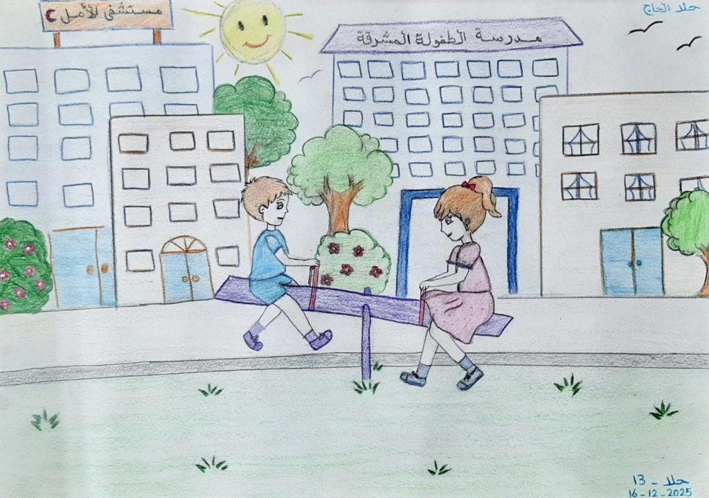 These artistic works were developed within the framework of the Child Protection Area of Responsibility (CP AoR) initiative “Gaza We Want.” The initiative supports children and young people in expressing their hopes, experiences, and visions for a peaceful future through creative and artistic mediums.