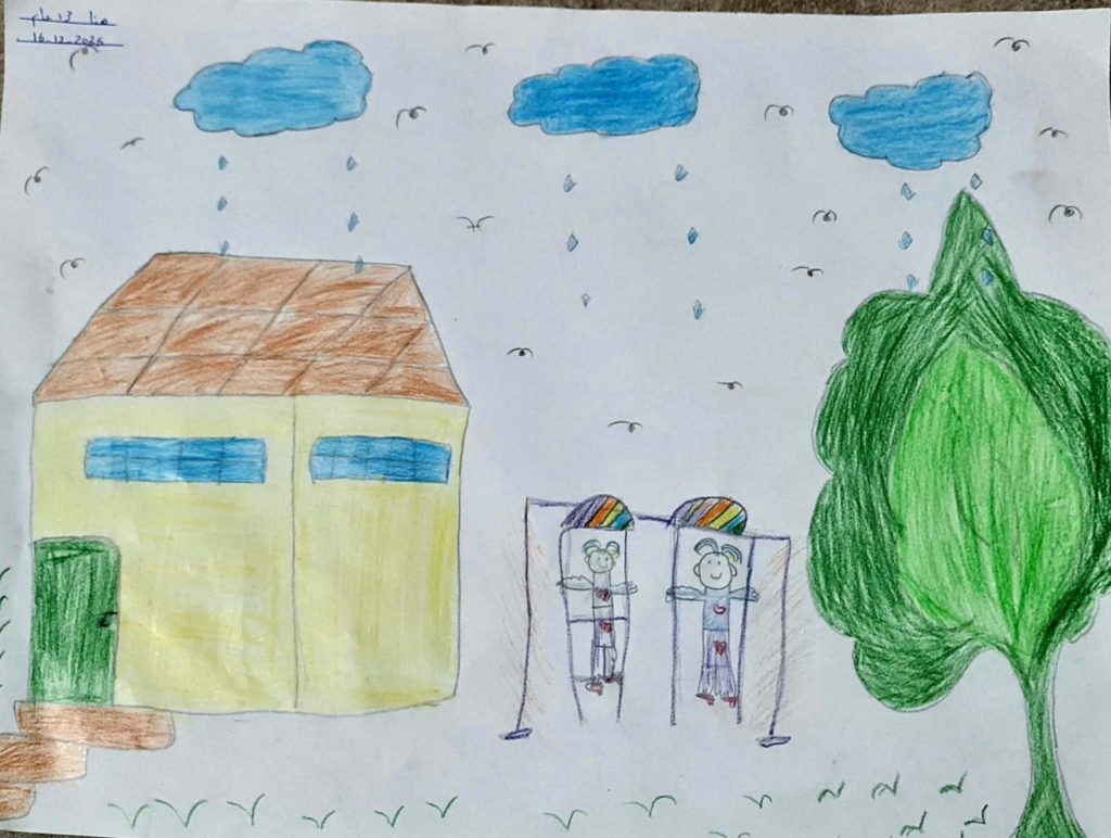 These artistic works were developed within the framework of the Child Protection Area of Responsibility (CP AoR) initiative “Gaza We Want.” The initiative supports children and young people in expressing their hopes, experiences, and visions for a peaceful future through creative and artistic mediums.