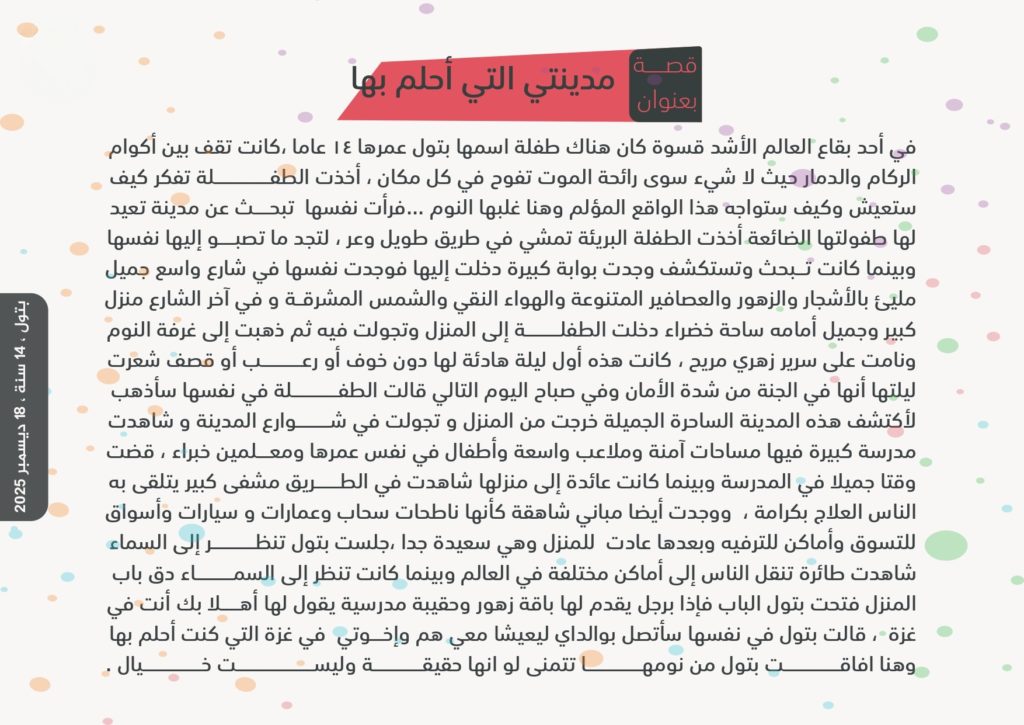 These artistic works were developed within the framework of the Child Protection Area of Responsibility (CP AoR) initiative “Gaza We Want.” The initiative supports children and young people in expressing their hopes, experiences, and visions for a peaceful future through creative and artistic mediums.