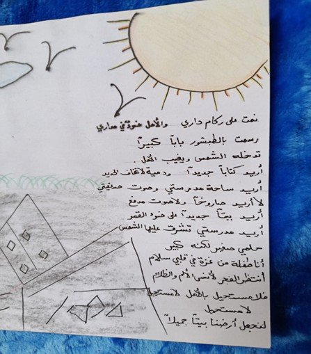 These artistic works were developed within the framework of the Child Protection Area of Responsibility (CP AoR) initiative “Gaza We Want.” The initiative supports children and young people in expressing their hopes, experiences, and visions for a peaceful future through creative and artistic mediums.